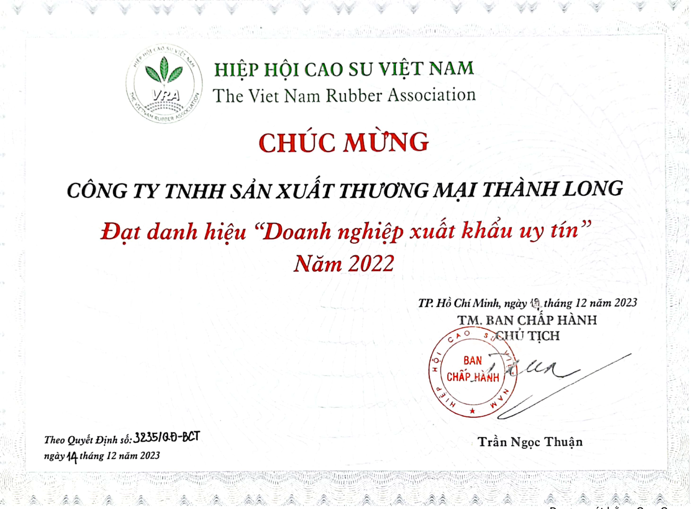 - THANH LONG RUBBER INDUSTRIES